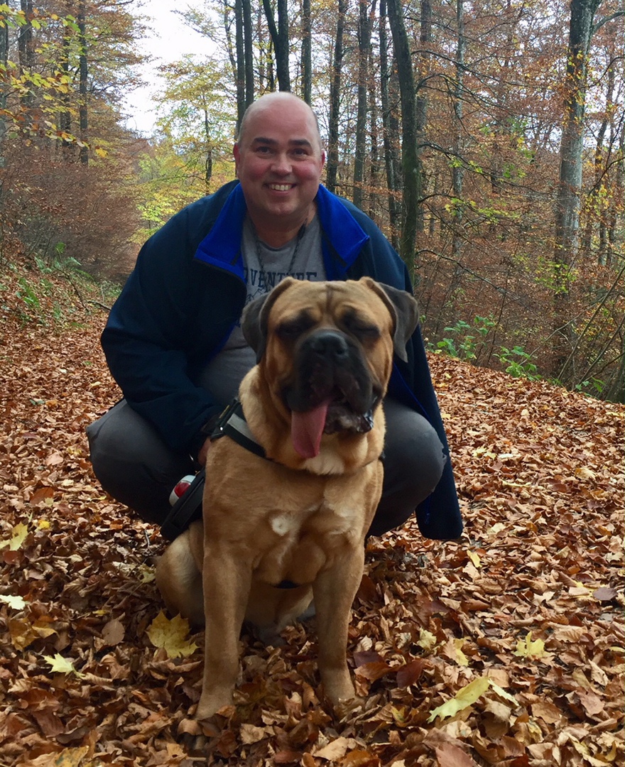 Wir waren über 20 Jahre stolze Besitzer einiger Bullmastiff. Dazu zählten drei Hündinnen: Elschen, Emma und Olivia. Zwei Rüden: Leo und Myles. Alle Hunde waren vom Zwinger Mighty Mates, außer Emma, sie stammte vom Zwinger Hazienda High Chapperal von Ulrich Bossert. Leonard ist leider am 7.5.16 verstorben. Er wurde 10 Jahre alt. Wir mussten ihn erlösen, er hatte Knochenkrebs im Endstadium.