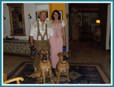 Die Liebe zu Hunden und auch anderen Tieren resultiert daraus, dass ich (Patrick), damit aufgewachsen bin. Als kleiner Junge hatte ich schon meinen eigenen Hund, ein kleiner Pudel (Bobby), der mich 19 Jahre lang durchs Leben begleitete. Meine Eltern hatten selber auch Hunde, "Boxer", so dass sich bei mir automatisch eine starke Zuneigung, zu dieser Rasse, entwickelte. Nach dem Tod meines Pudels, kaufte ich mir meinen "ersten", eigenen Boxer-Rüden "Chino". Es dauerte nicht allzulange, da nahm ich noch die Boxerhündin "Tappsi", meiner Mutter, auf, und so begann mein "Leben" mit etwas größeren Hunden. Etwas anders sah es bei meiner Frau aus. Sie hatte, bevor wir uns kennenlernten, gar kein Interesse an Tieren, sogar eine Phobie, besonders bei Hunden...und dann kamen wir (Tappsi, Chino und ich)! Alles wurde anders für sie. Sie entdeckte ihre Liebe für diese tollen Tiere und wir genossen gemeinsam die schöne Zeit mit ihnen bis zu ihrem Tod. Nach der "Ära Boxer", wollten wir natürlich wieder Hunde, aber keine Boxer mehr, da die Erinnerungen an unsere "Beiden" zu weh tat. Ich (Patrick), habe dann für uns, durch Zufall in einem Film, die Rasse Bullmastiff entdeckt. Sie ähnelt dem Boxer optisch sehr, ist aber "stärker" und wesentlich "ruhiger" im Temperament. So wurden wir Besitzer zweier wunderschöner Bullmastiff, "Elschen" und "Leonard". Meine Frau entdeckte für uns das Hobby "Hundeaustellungen" und so begann nun unsere neue Herausforderung: "Hundezüchten".
